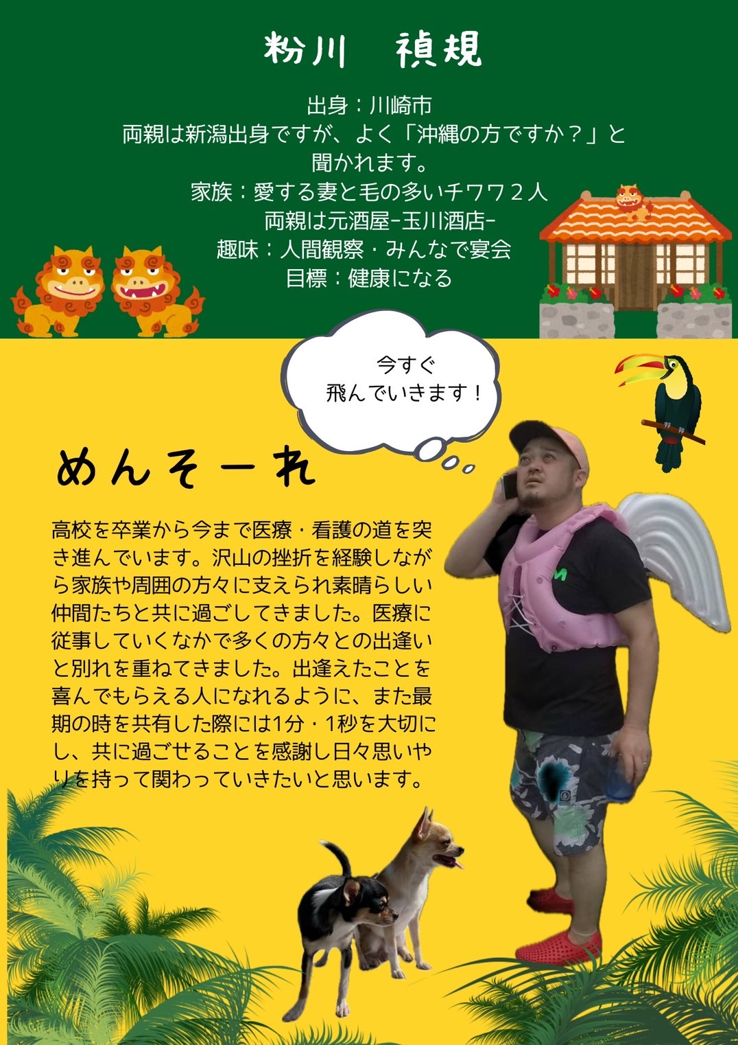 | メッセージ | 家族が好きです。 仲間が好きです。 家が大好きです。 家族を看るように、大切な人を看るように愛あるケアをしていきます。 「笑顔とパワー」を与えられるようサポートさせていただきます。 |